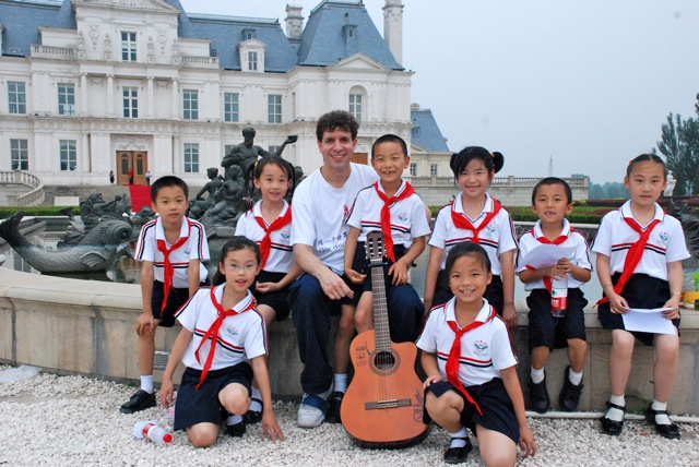 Philippe et quelques écoliers chinois se préparent pour chanter la chanson "Francophonie".