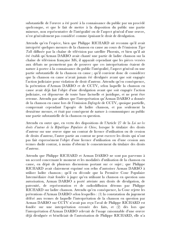 Jugement de la Cour Supérieure de la ville de Beijing
